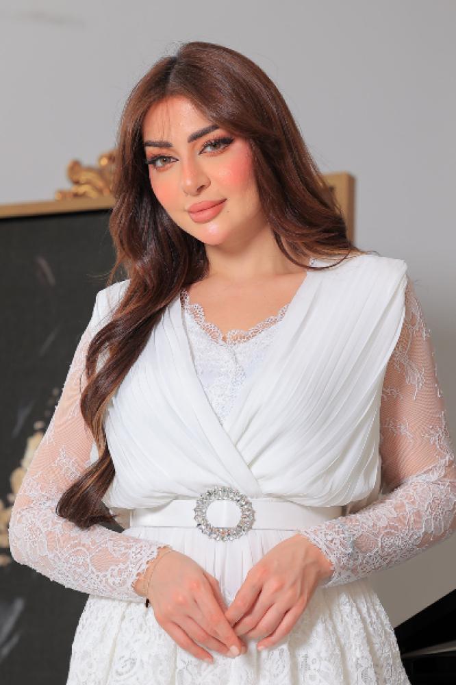 فستان فاخر بتصميم أنثوي ناعم يعكس مزيجًا من الرقي والنعومة، يتميز بقماش الدانتيل والشيفون الراقي مع تفاصيل مطوية أنيقة ولمسات دانتيل على الأطراف. يأتي بياقة على شكل V وأكمام طويلة تضيف لمسة كلاسيكية ساحرة، مع حزام أنيق مزين بإبزيم يبرز جمال الخصر. خيار مثالي لحفلات الخطوبة والزواج والمناسبات الخاصة.