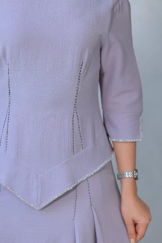 إذا كنتِ تدورين على فستان يوازن بين البساطة والرقي، فهالفستان هو الخيار اللي ما يتفوّت! بلونه الموف الفاتح الجذاب وتفاصيله الهادية، يعطيك إطلالة راقية وأنيقة بدون مبالغة. تصميمه الفريد عند الخصر وخط العنق الخناقي يضفي لمسة فخمة بأسلوب محتشم.