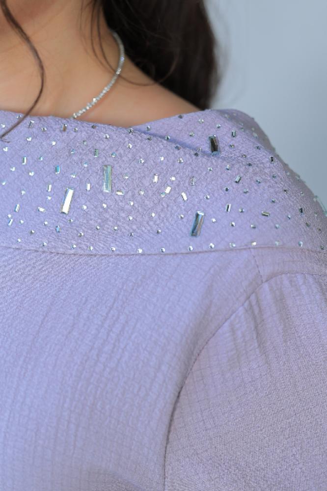 فستان موف فاخر – نعومة وأناقة تخطف الأنظار