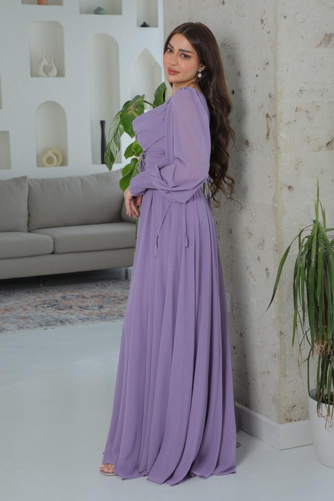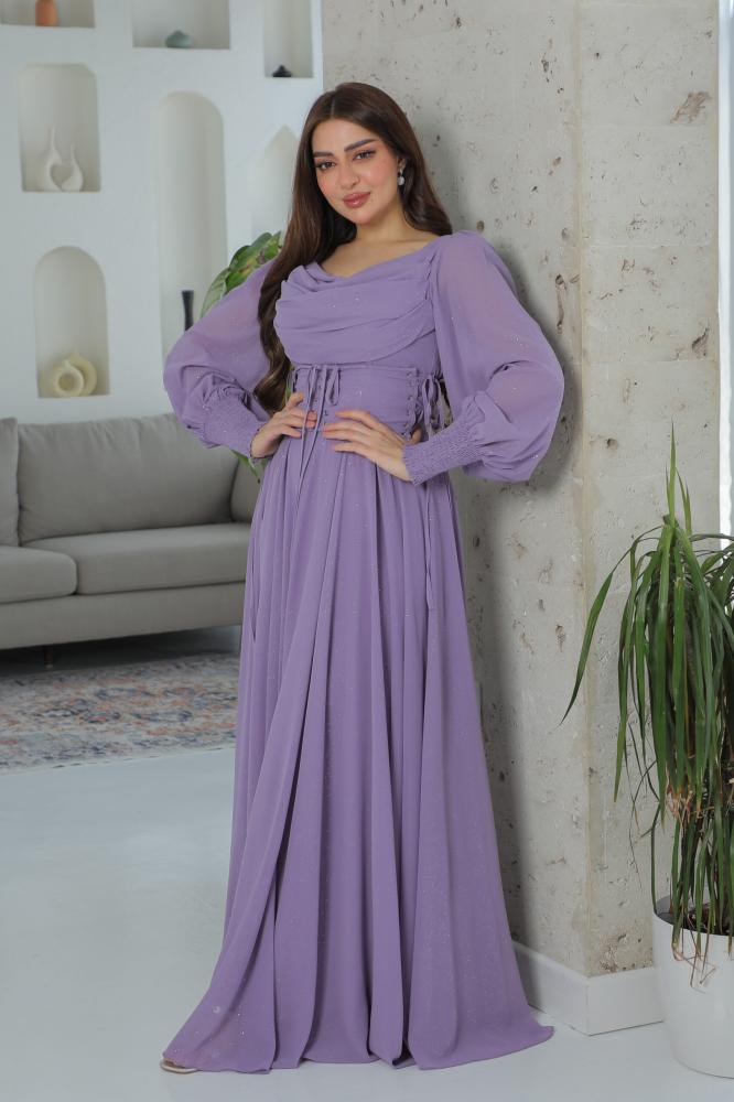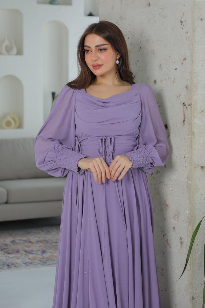 فستان شيفون بلمعة مع حزام كورسيه أنيق بلون موف فاتح