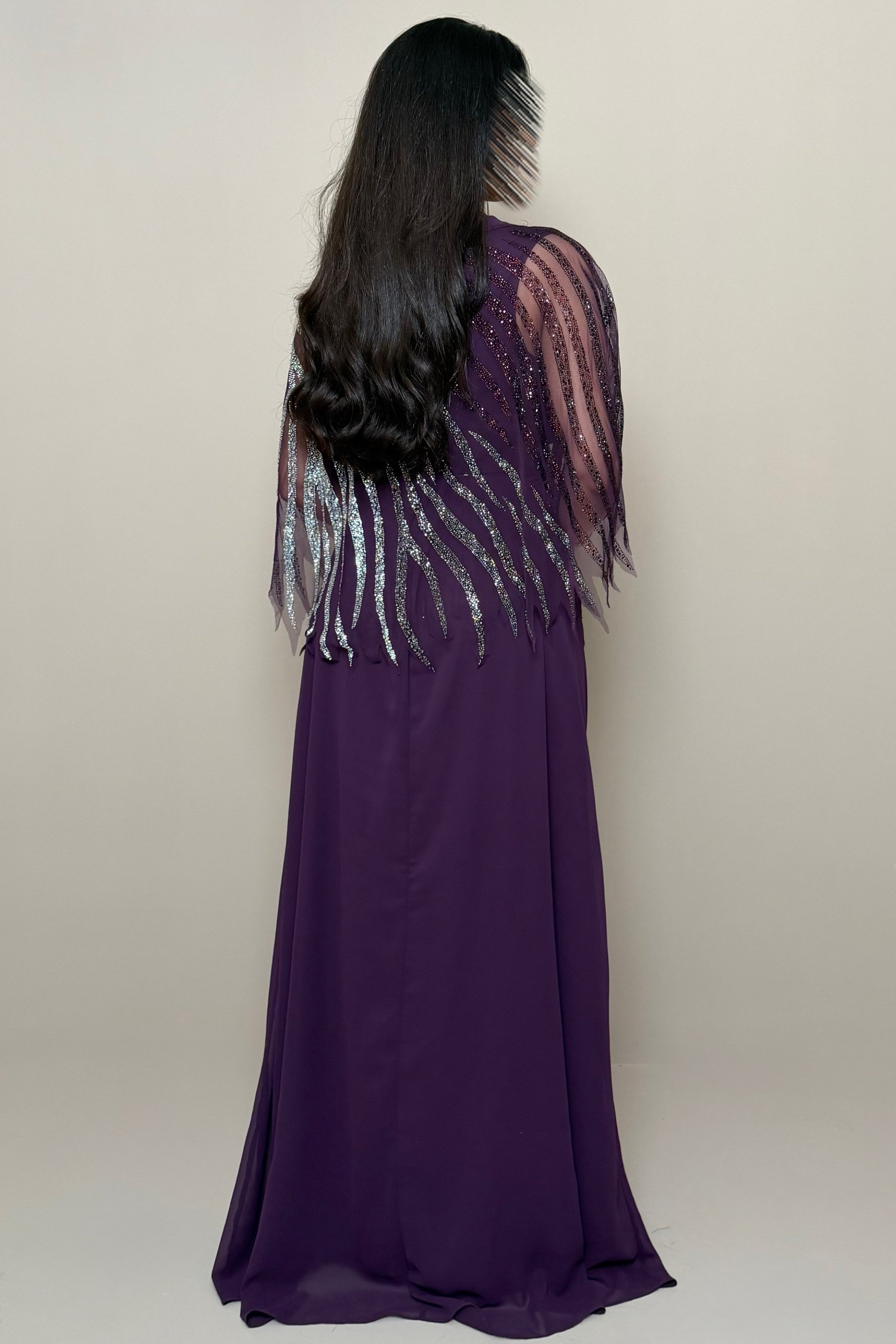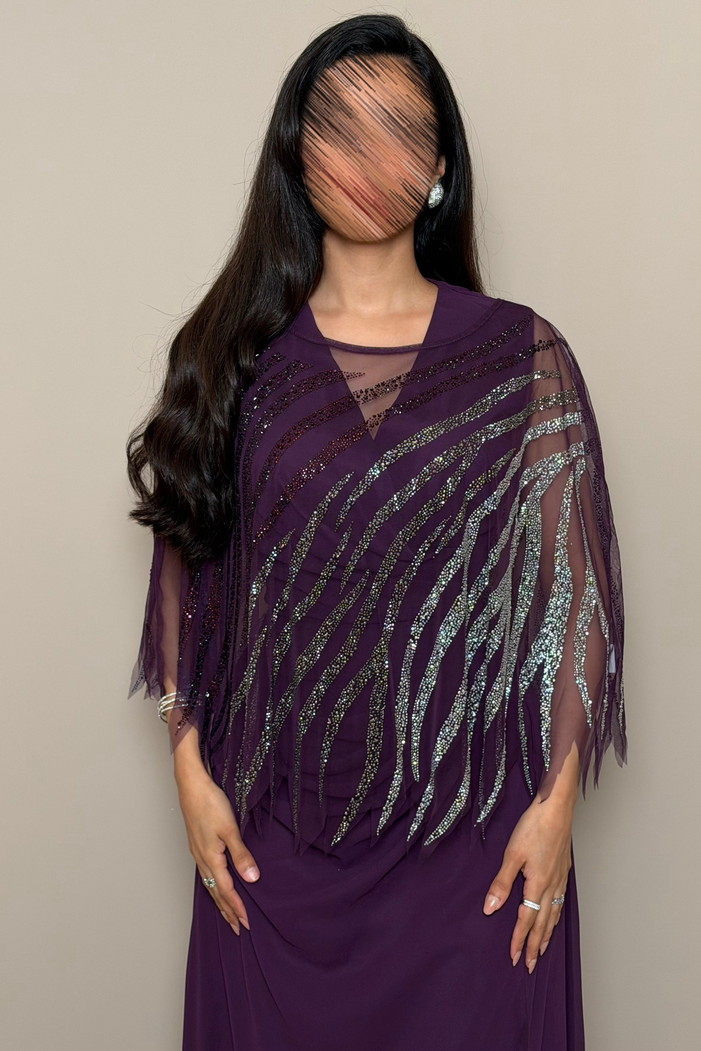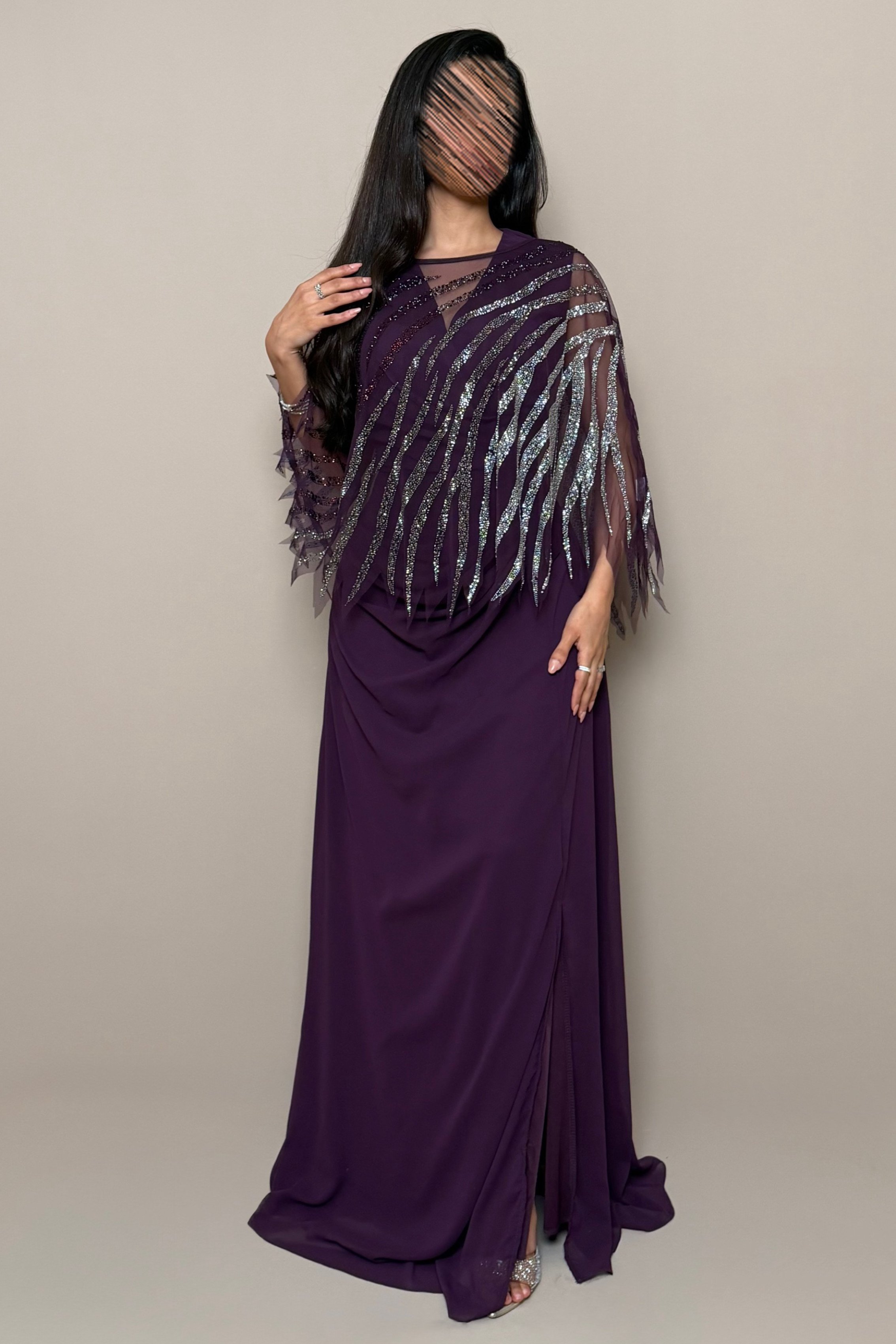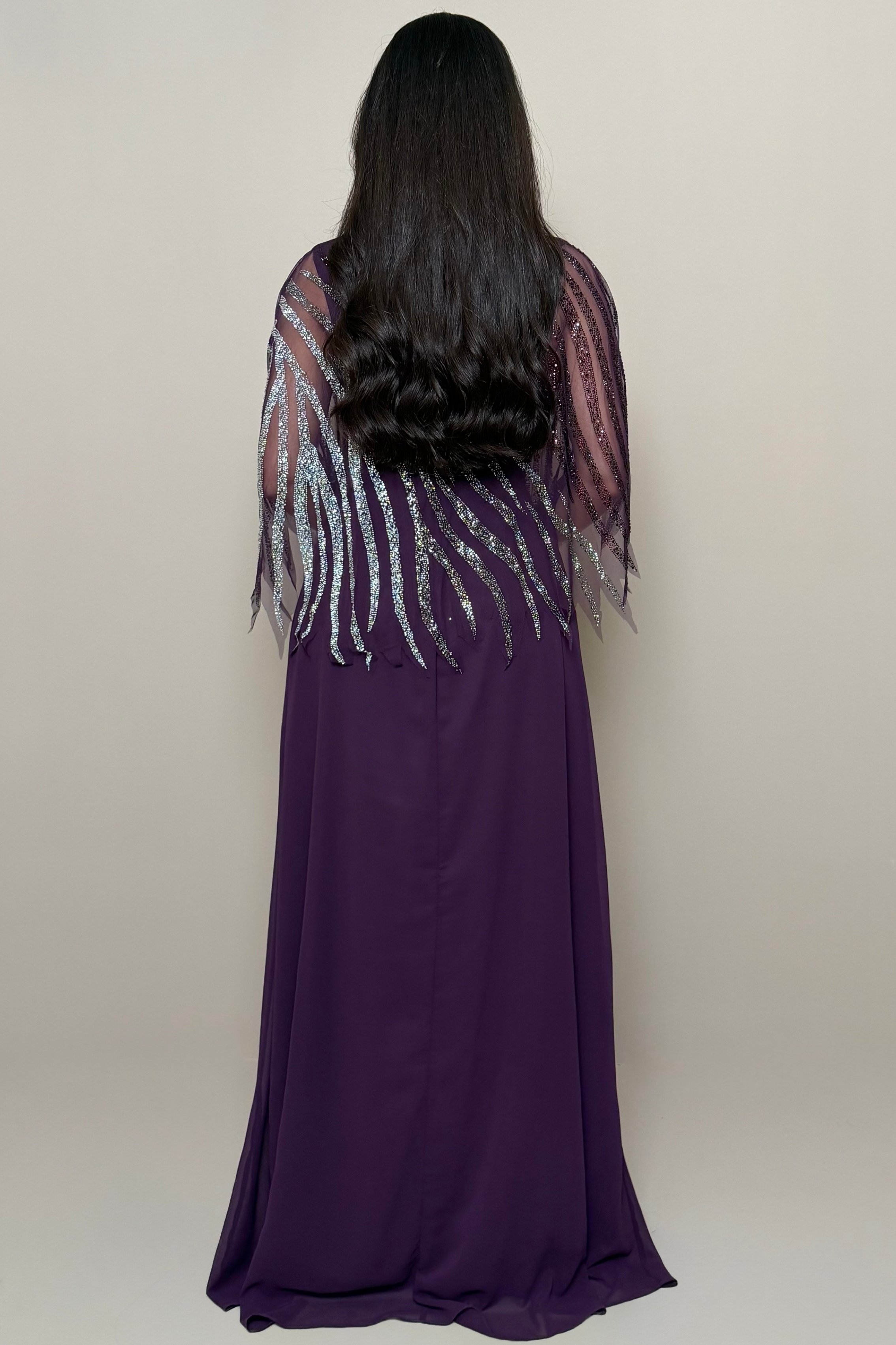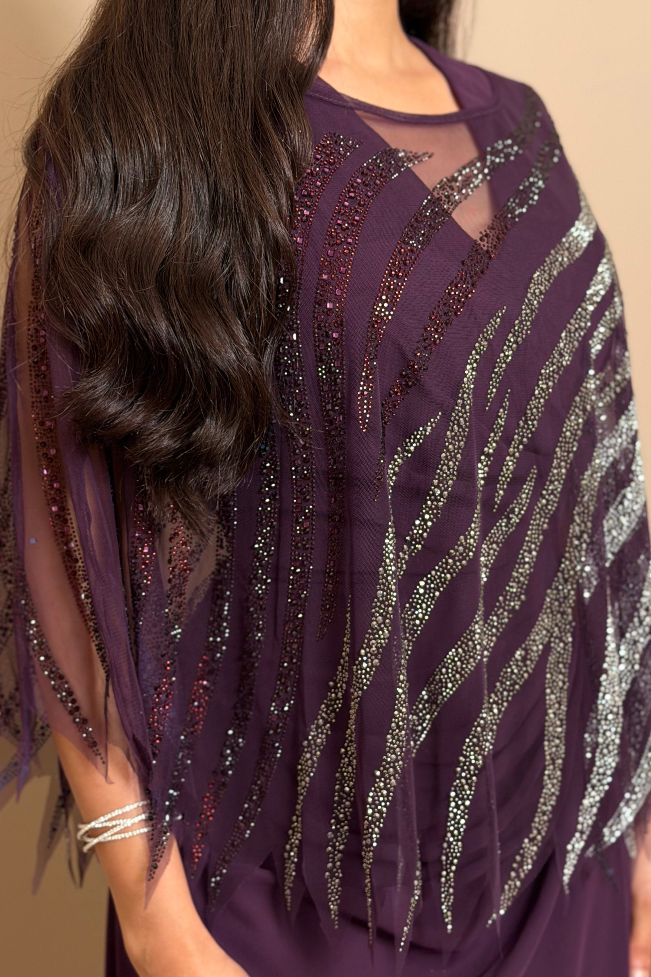 فستان بنفسجي أنيق بتفاصيل لامعة فاخرة