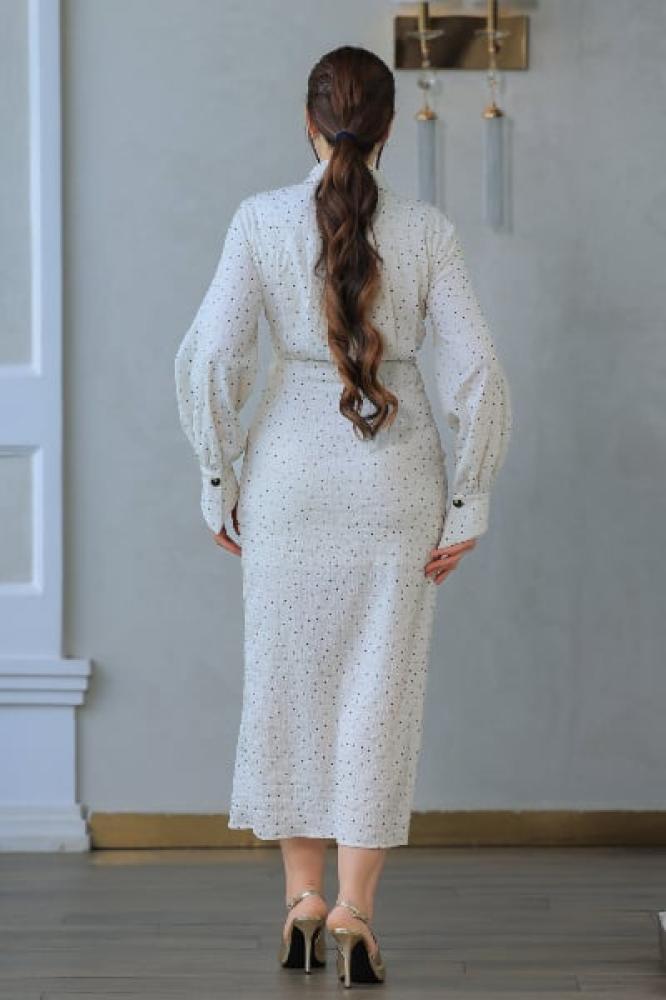 فستان كلاسيكي عصري بأكمام طويلة وياقة قميص