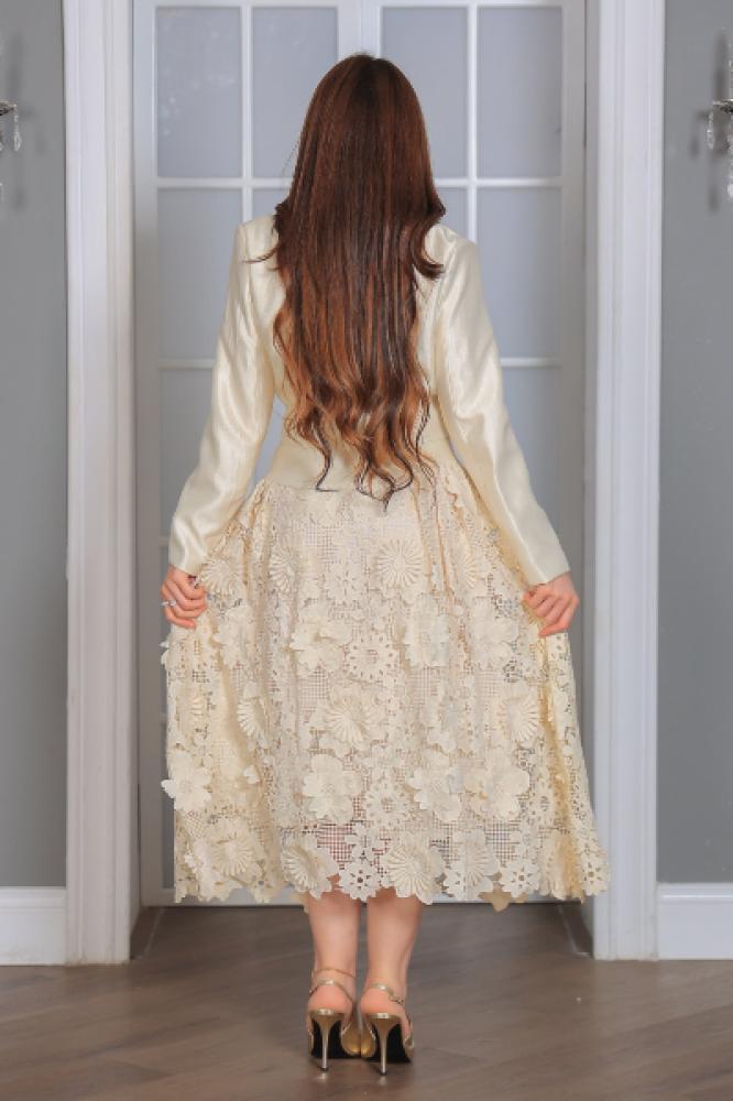• تنورة دانتيل أنثوية مطرزة بزهور بارزة.